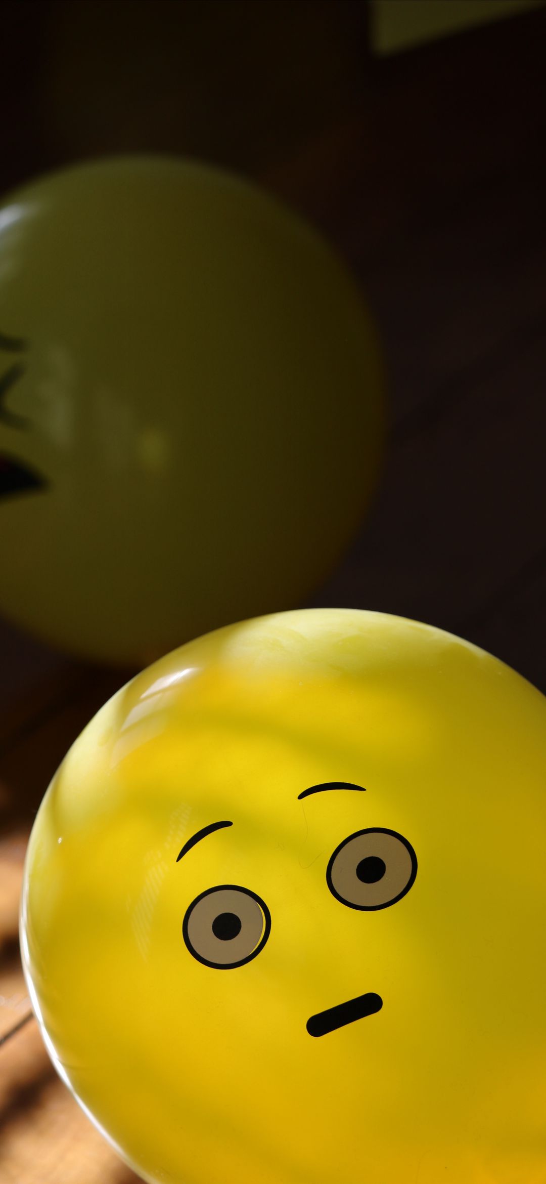 A bright yellow balloon features a surprised emoji face with wide eyes and a slightly open mouth. The playful design adds a touch of humor and whimsy to any space, perfect for a fun and lighthearted vibe.