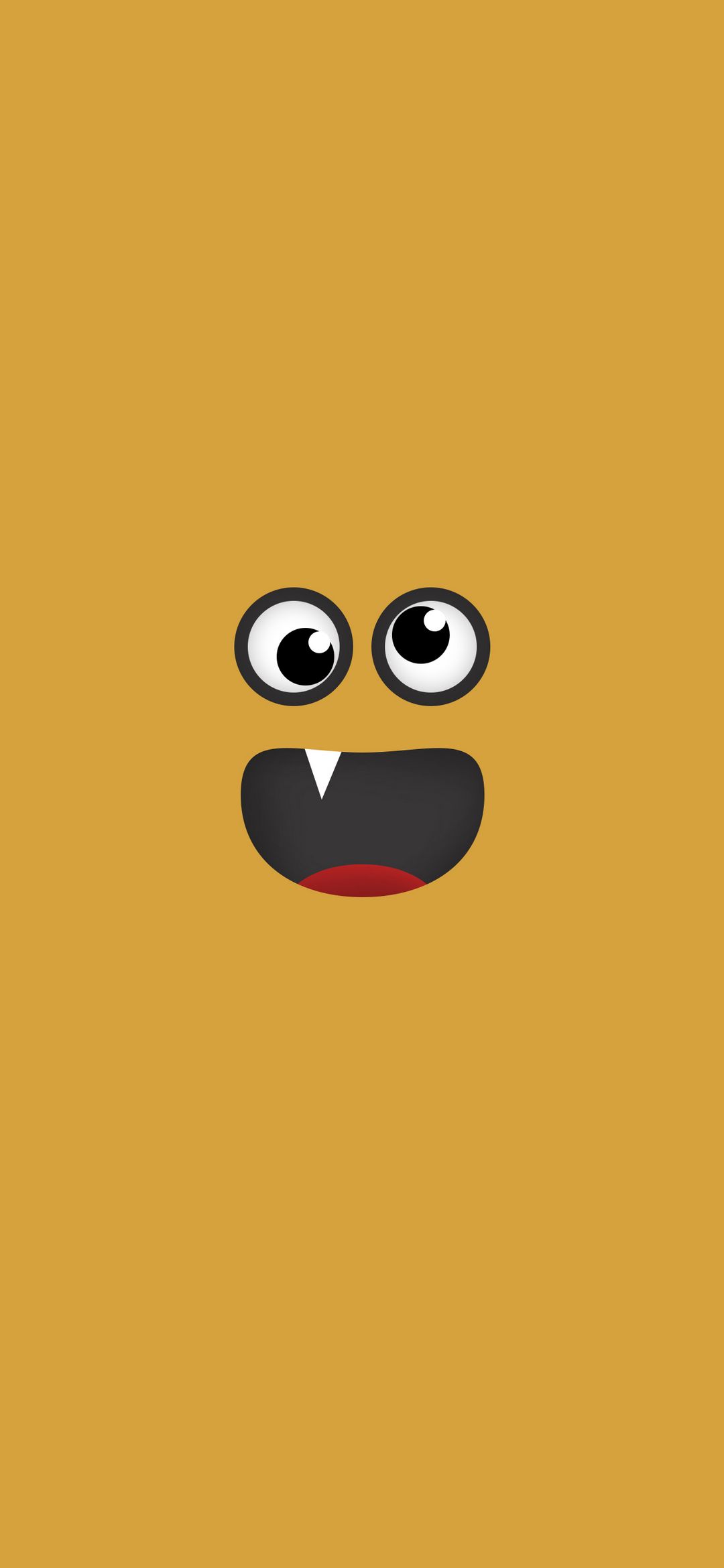 A quirky, cartoonish monster face with big, curious eyes and a wide, toothy grin. This playful design brings a touch of fun and whimsy to any screen, perfect for a cheerful wallpaper.