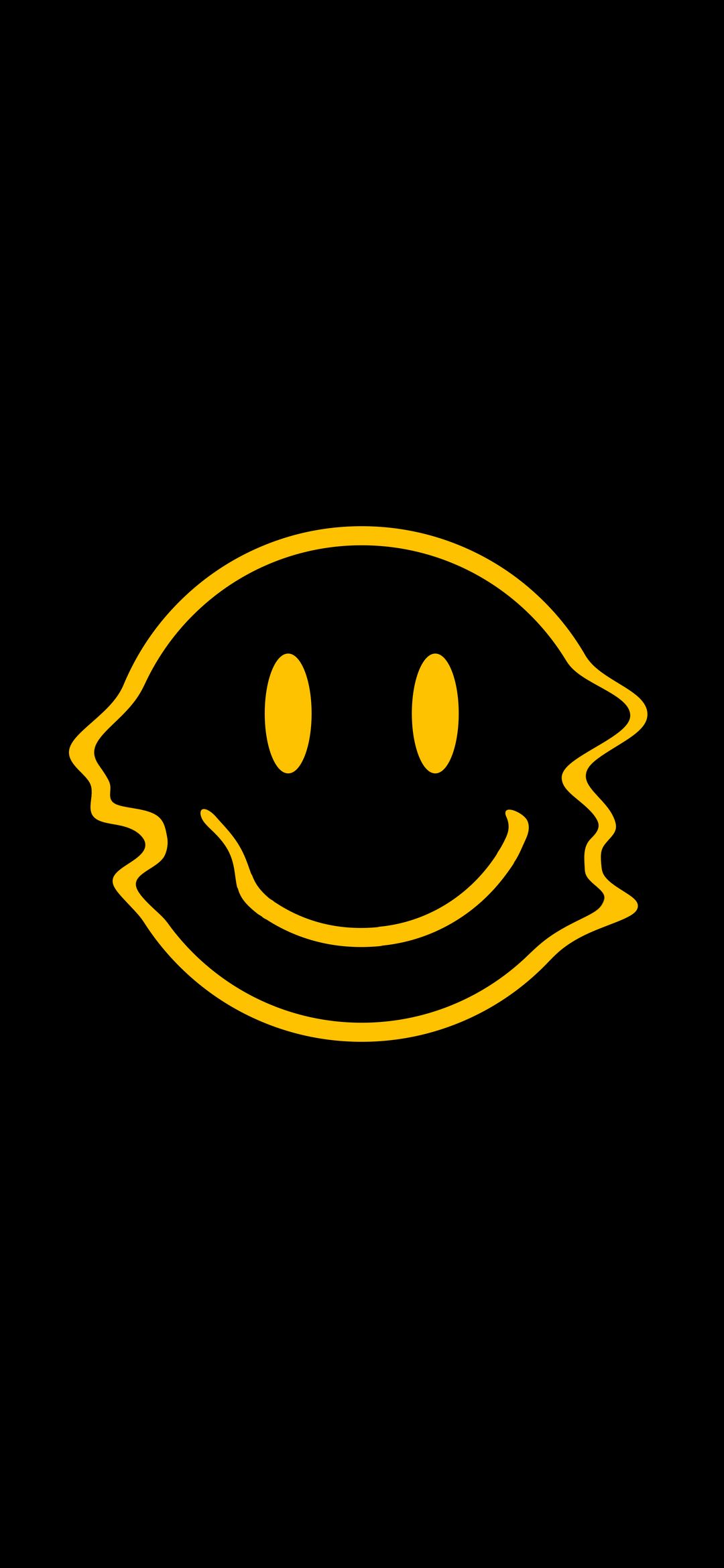 A bright yellow, distorted smiley face on a black background. This trippy, abstract design brings a unique and cool vibe to any screen.