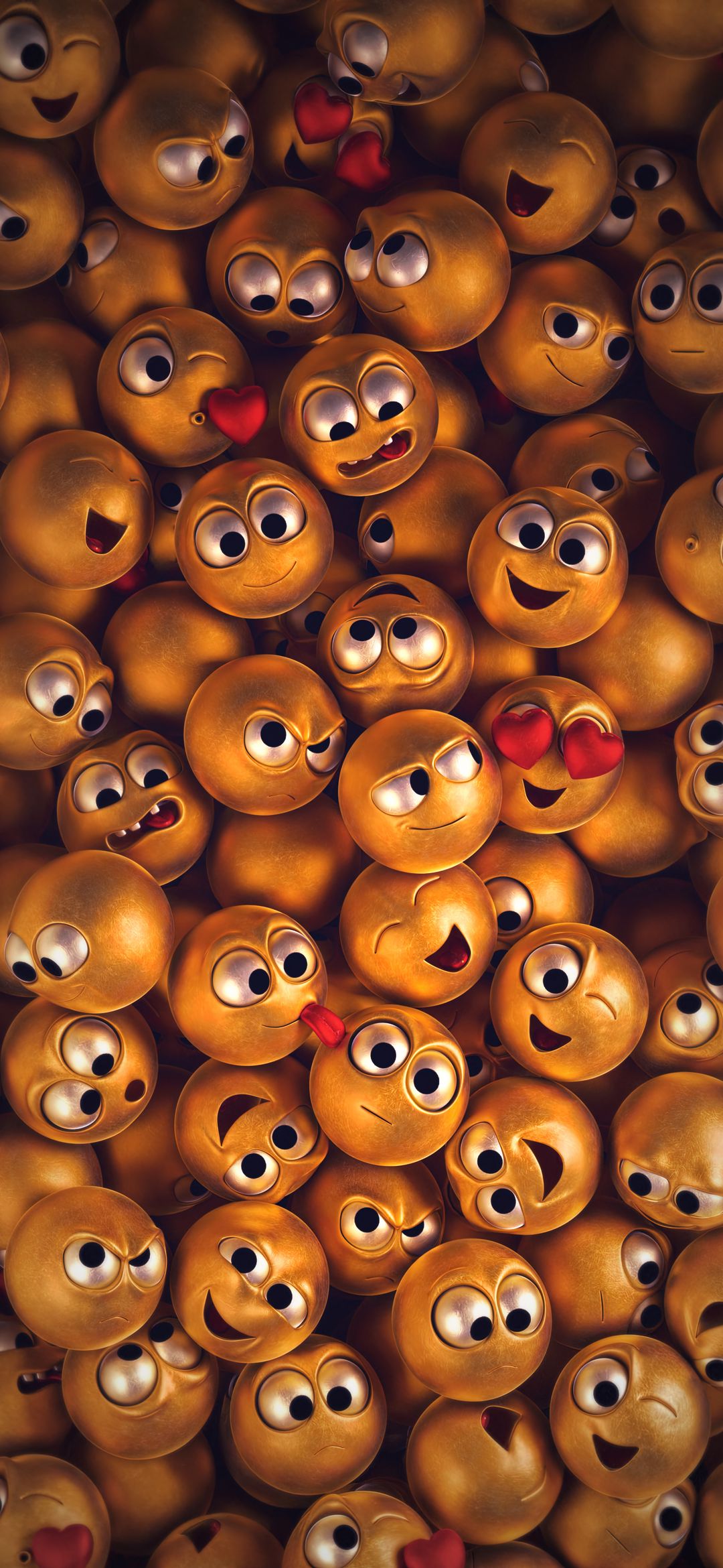 A vibrant collection of golden emoji faces, each with unique expressions from joy to surprise. This fun and colorful wallpaper brings a playful mood to any screen, perfect for adding personality.
