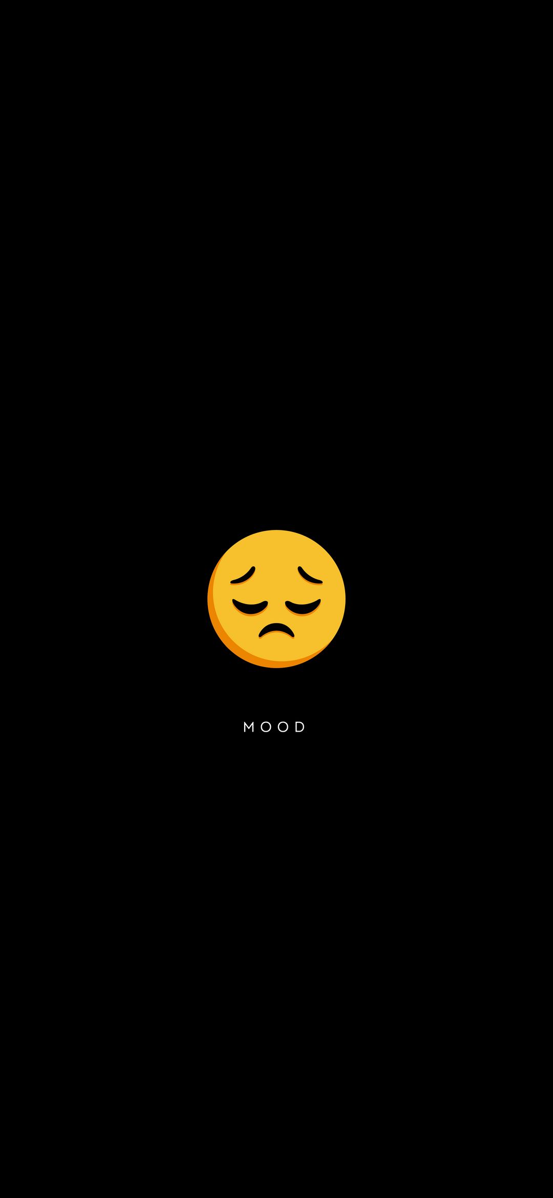 A yellow emoji with a sad expression sits against a stark black background, with the word 'MOOD' below. This simple yet evocative image captures a feeling of melancholy and introspection.