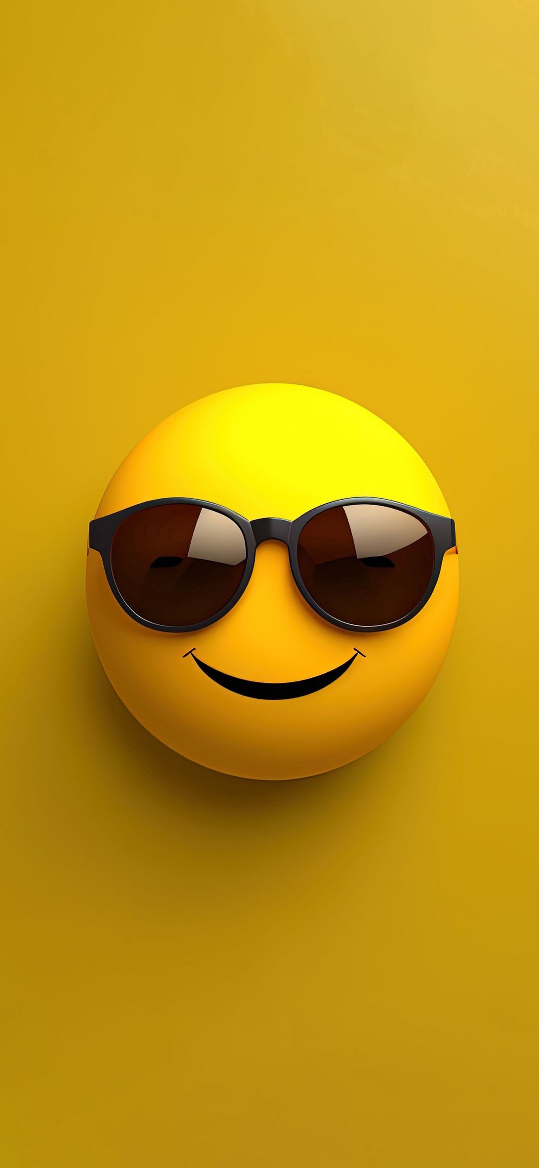 A bright yellow emoji sporting cool sunglasses and a cheerful smile. This fun and vibrant wallpaper brings a touch of happiness and style to any device. Perfect for adding a pop of color and a positive vibe.