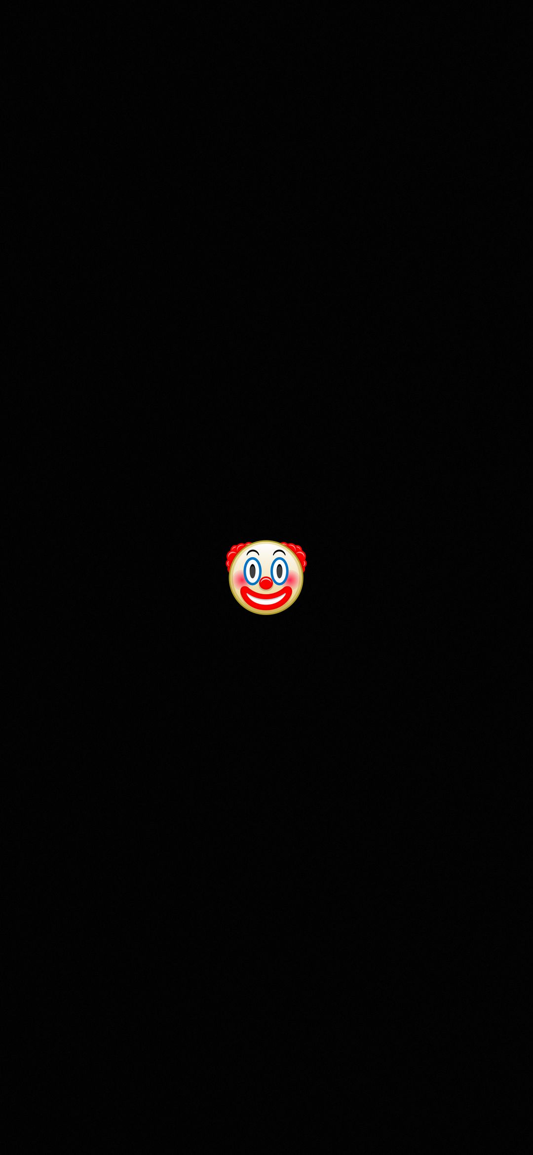 A bright and cheerful clown face emoji stands out against a dark background. This playful design brings a touch of fun and whimsy to any screen, perfect for those who love a bit of quirky art.