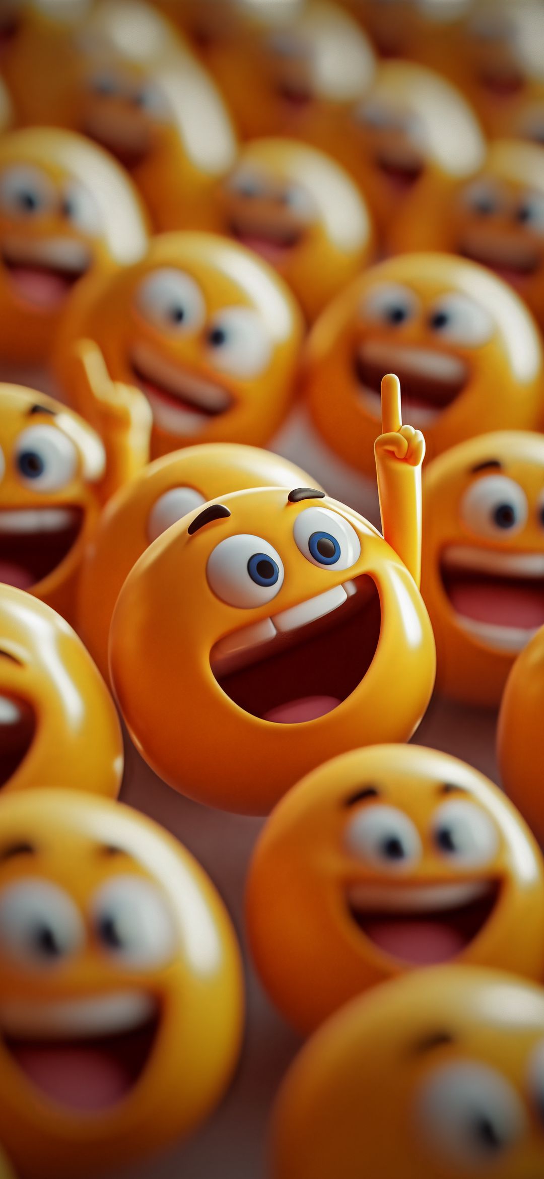 A vibrant wallpaper featuring a crowd of cheerful yellow emoji faces with big smiles and wide eyes. One emoji stands out with a finger raised, conveying excitement or a bright idea. Perfect for adding a touch of fun and positivity.
