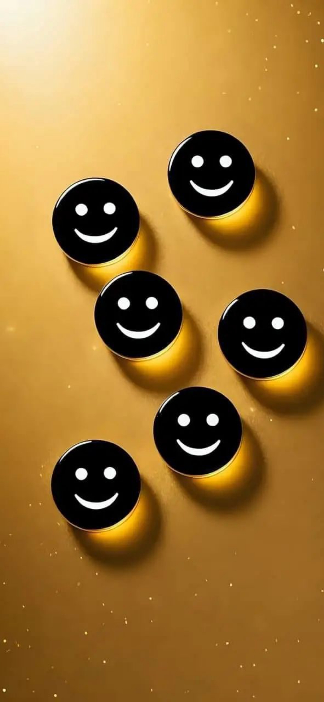 Brighten your day with this cheerful wallpaper featuring a cluster of black smiley faces on a shimmering golden background. Perfect for adding a touch of happiness and positivity to your screen.