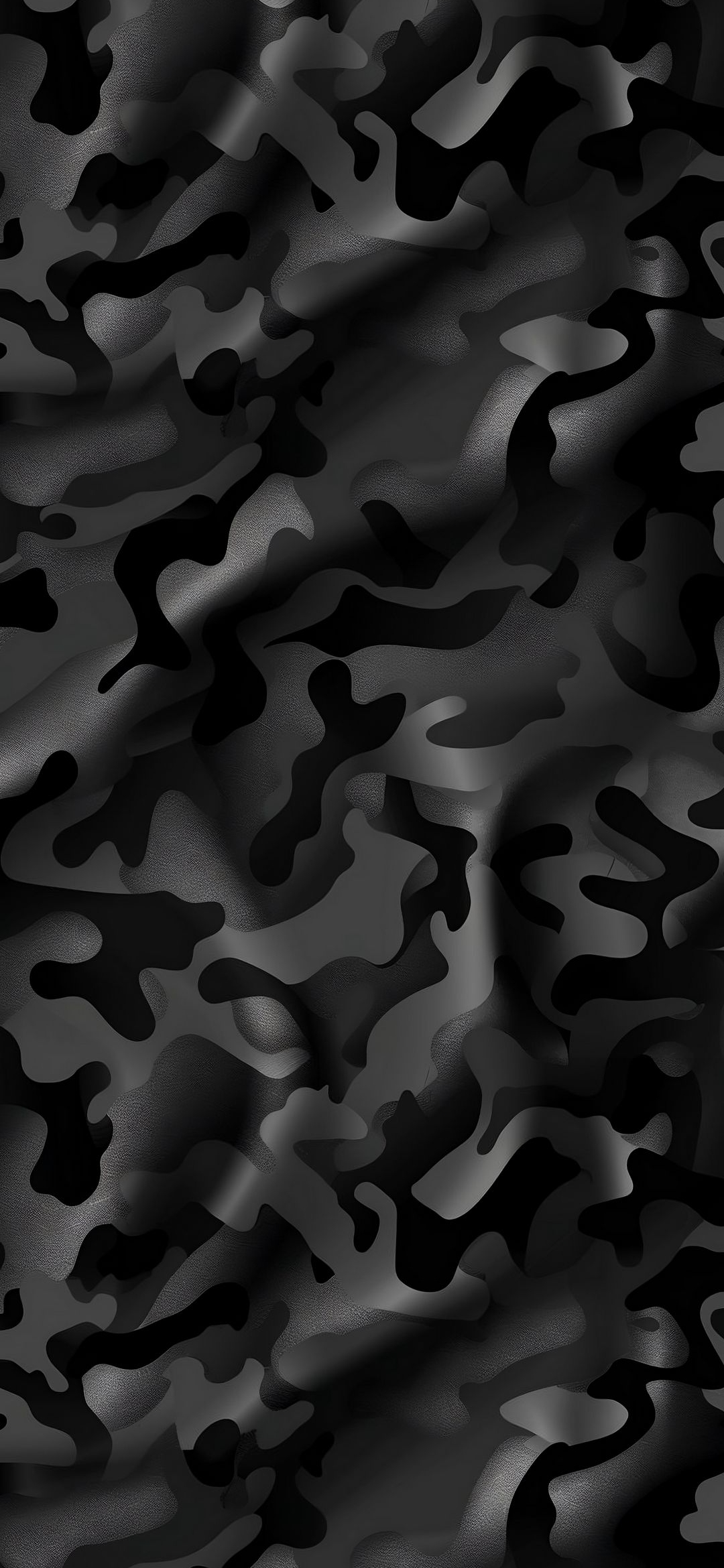 A cool, dark camouflage pattern with flowing shapes. Perfect for a stealthy or urban vibe. This design blends shades of black and grey for a striking look.