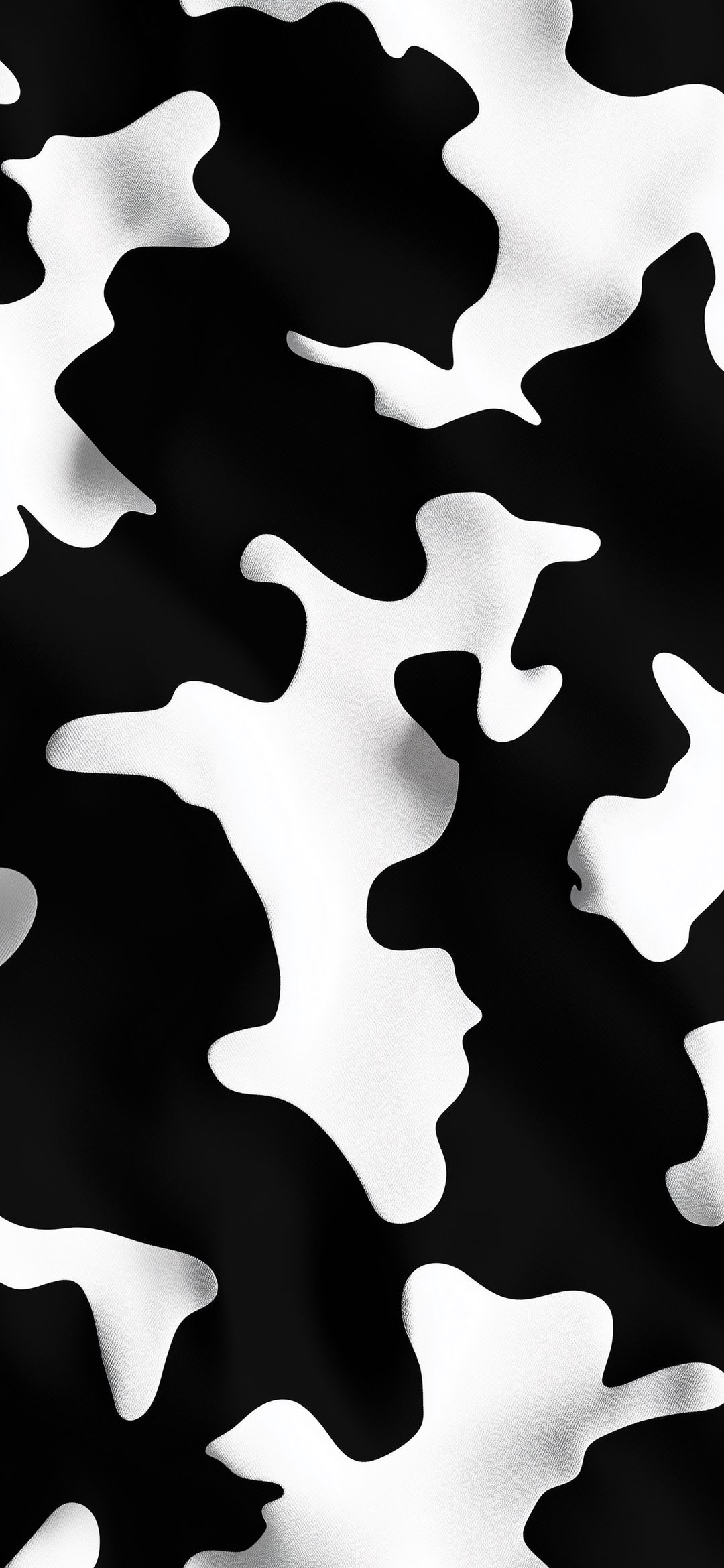 This wallpaper features a classic black and white cow print pattern. The bold contrast creates a striking visual that's perfect for adding a touch of farm-inspired style to your device. It's a simple yet iconic design.