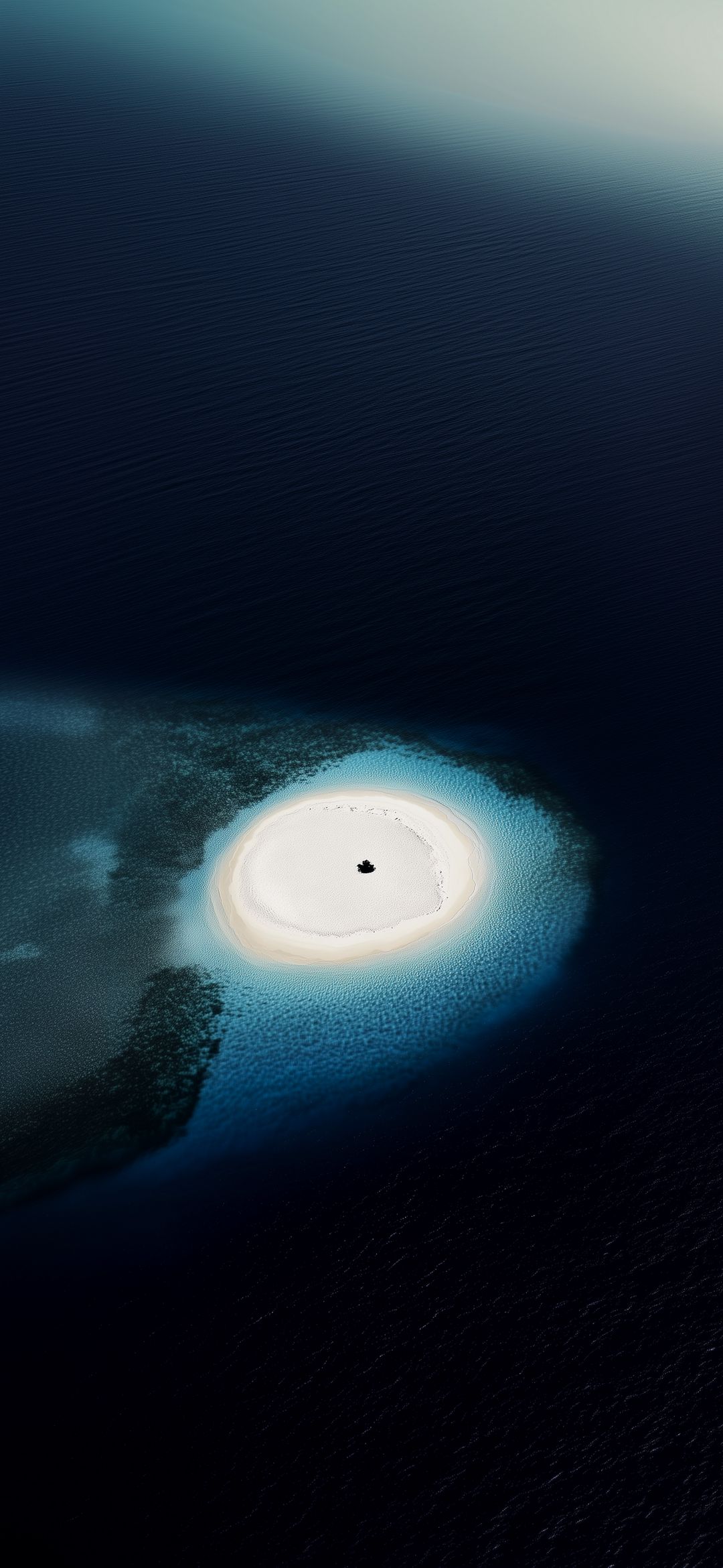 Discover a serene, isolated island paradise from an aerial view. White sand meets deep blue ocean, creating a tranquil and breathtaking scene. Perfect for a peaceful escape.