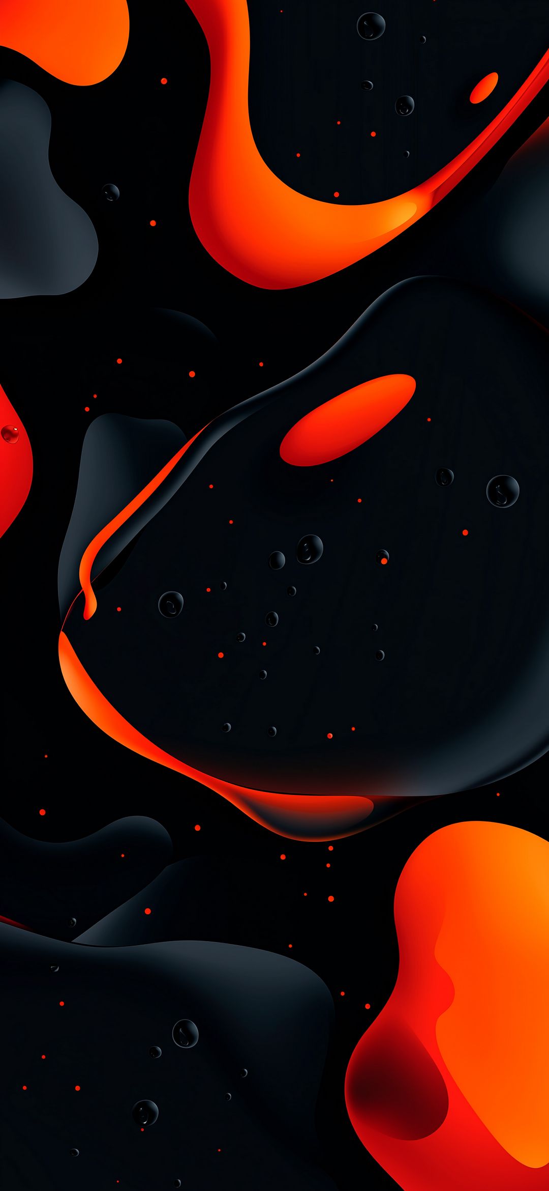 Experience a mesmerizing flow of dark and vibrant orange abstract shapes. This wallpaper creates a cool, modern vibe with its fluid design and glowing accents, perfect for any digital space.