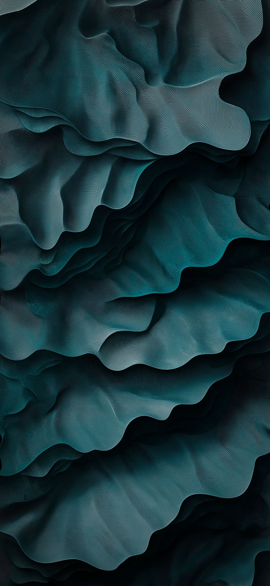 Dive into a mesmerizing world of textured teal waves. This abstract digital art features flowing forms and intricate lines, creating a sense of depth and calm. Perfect for adding a touch of modern elegance to any screen.