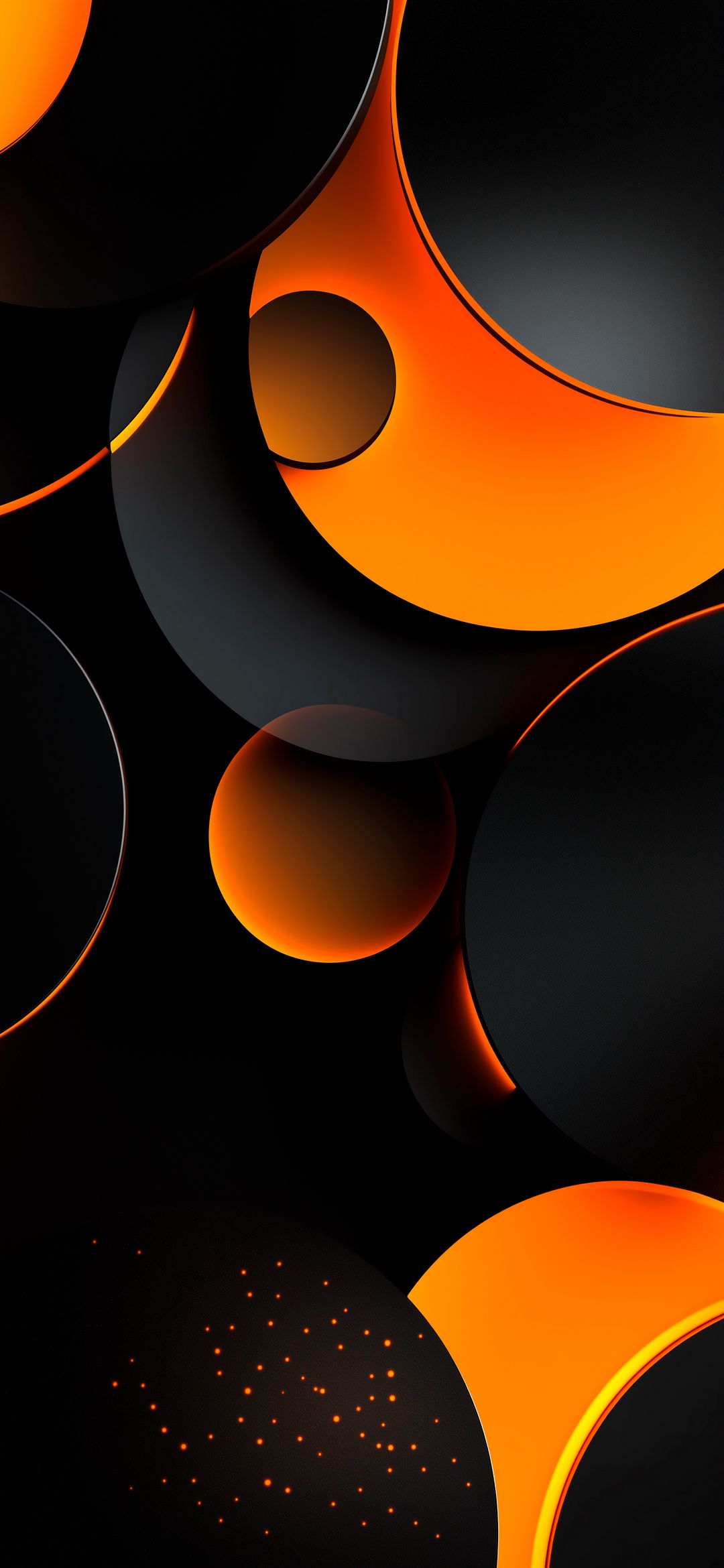 Experience a striking blend of dark orange and black in this abstract wallpaper. Glowing circles and subtle particles create a modern, vibrant feel perfect for any device.