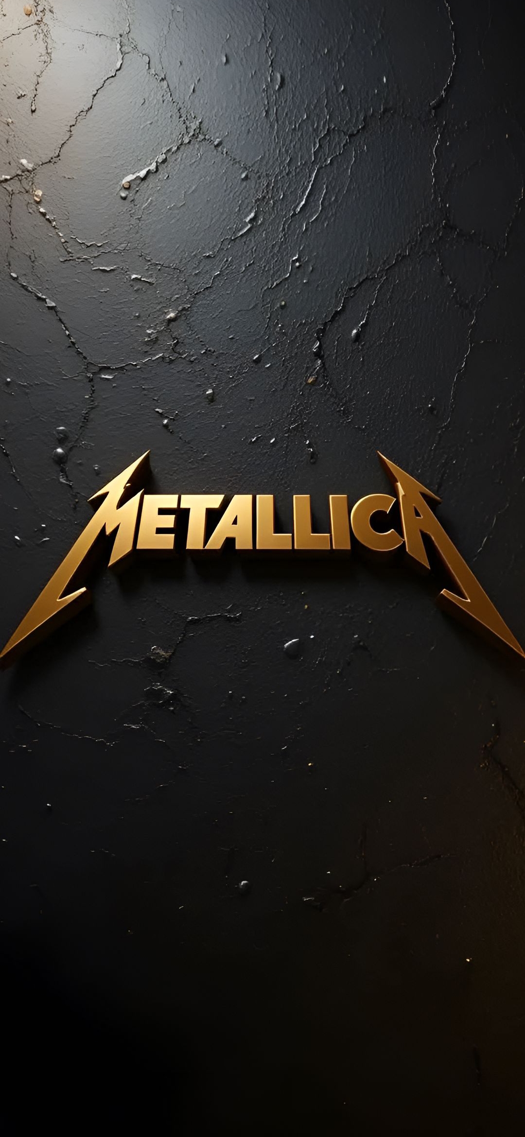 Showcase the iconic golden Metallica logo against a dark, textured background. This wallpaper captures the powerful and legendary essence of the band, perfect for any fan.